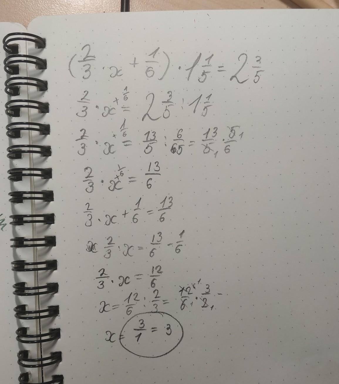 (2/3 x +1/6) ∙ 1 ціла 1/5= 2 цілих 3/5