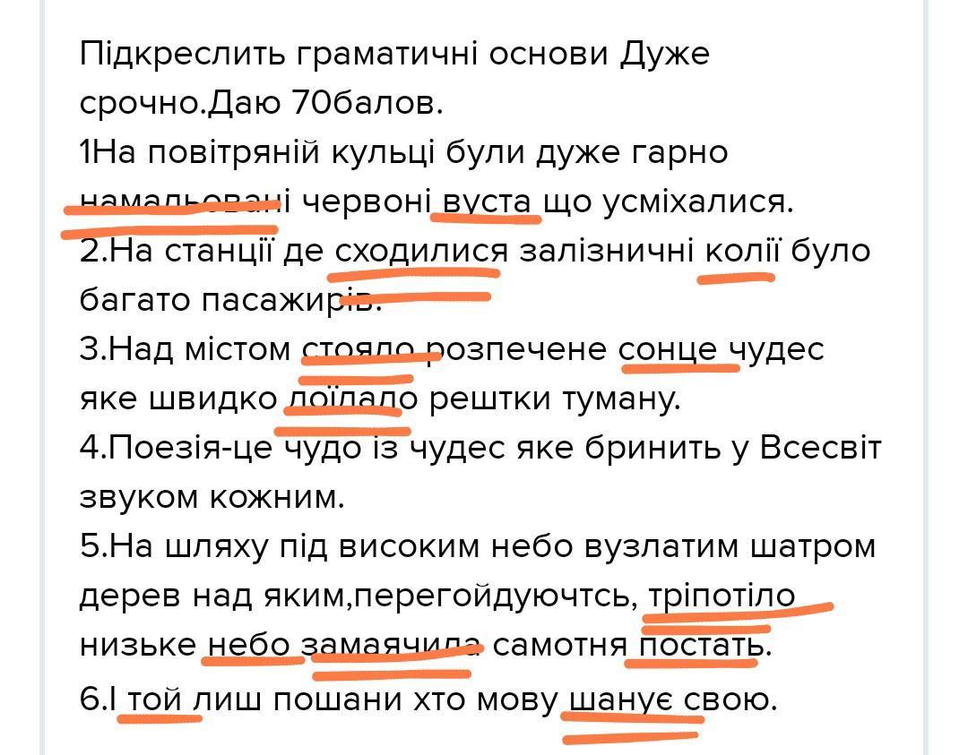 Підкреслить граматичні основи Дуже срочно.Даю 70балов.
