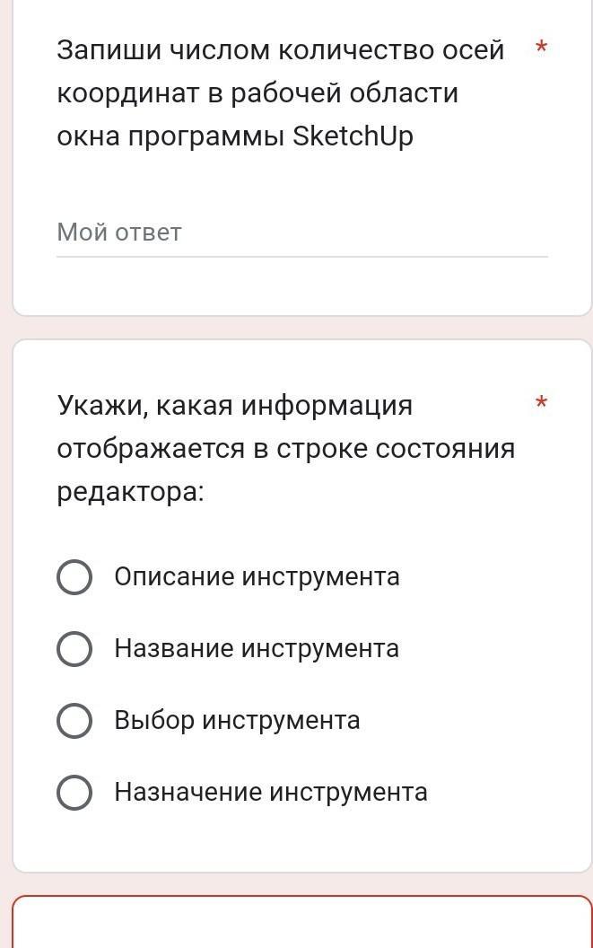 Запиши числом количество осей координат в рабочей области окна программы SketchUp * СРОЧНО ПОЖАЛУЙСТАА