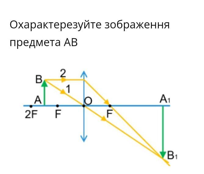 Пояснення: зображення предмета у збиральній лінзі, коли предмет знаходиться між фокусом і подвійним фокусом