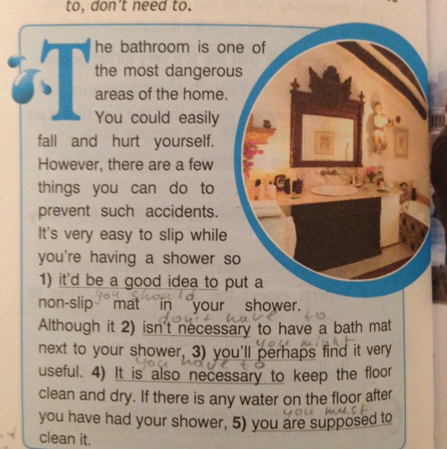 Ванная это одна самых опасных мест в доме. Вы можете легко упасть и нанести себе повреждения. Однако, есть несколько вещей, которые вы можете сделать, чтобы предотвратить такие инциденты. Очень легко поскользнуться, когда вы принимаете душ, поэтому хорошая мысль постелить противоскользящий коврик в вашем душе. Хотя нет такой необходимости иметь коврик рядом с душем, возможно вы найдете это очень полезным. Также необходимо держать пол чистым и сухим. Если есть немного воды на полу, после того как вы приняли душ, вы должны убрать её.