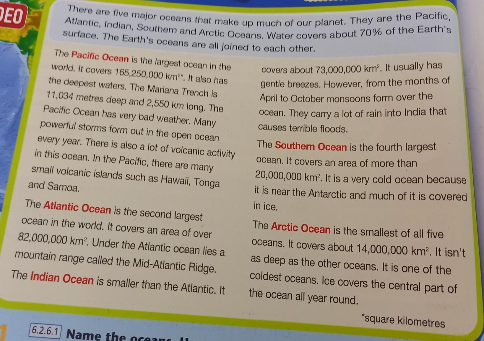 ну там написано в задании "скажи 2 вещи которые ты помнишь про эти океаны своему товарищу"