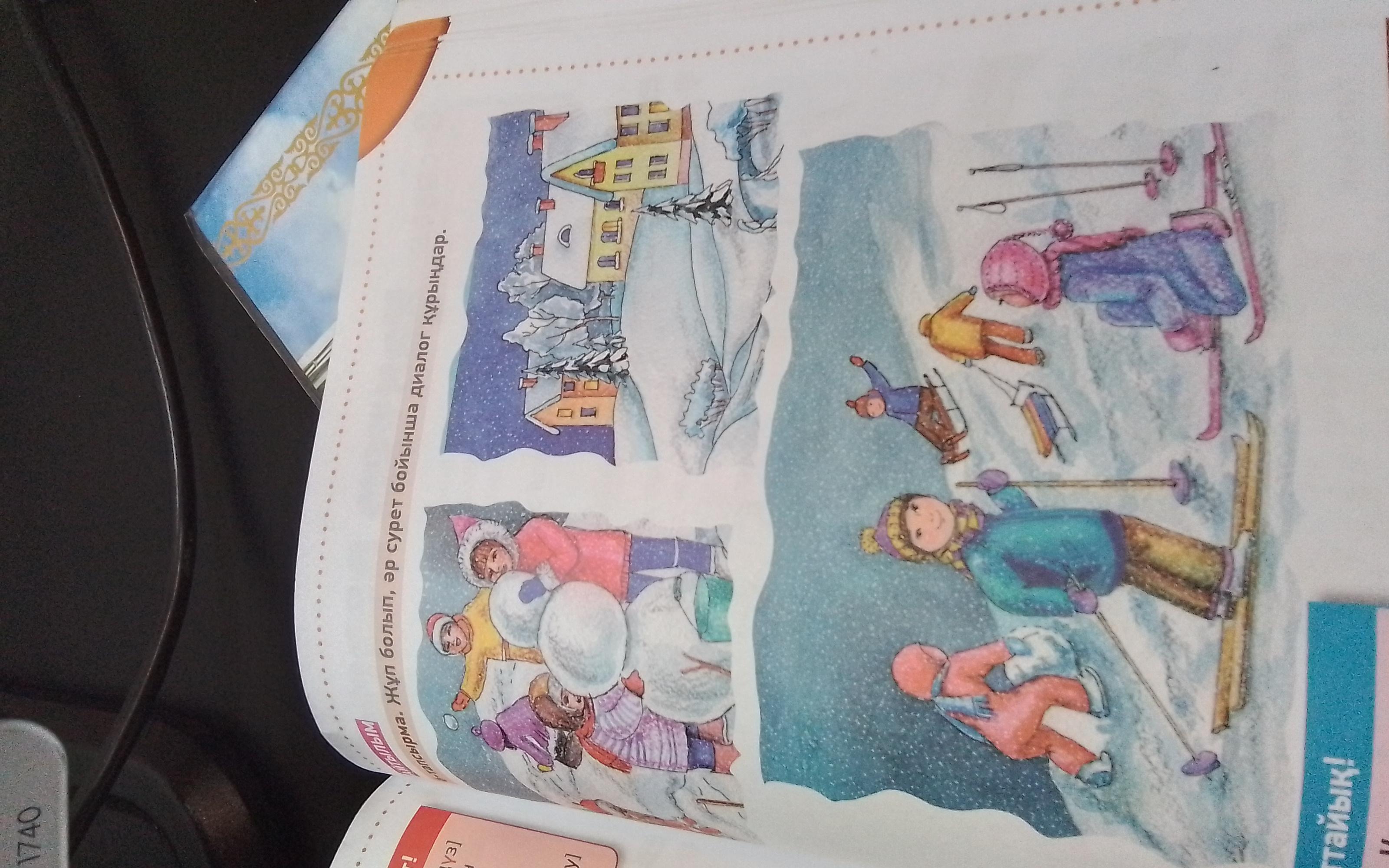Далада қыс, қар түсті .Балалар далада қар ойнап жатыр .Олар аққаланы салып жатыр . Кейбір балалар қардан шанамен түсіп жатыр . Барлығы жаңа жылды күтіп жатыр .