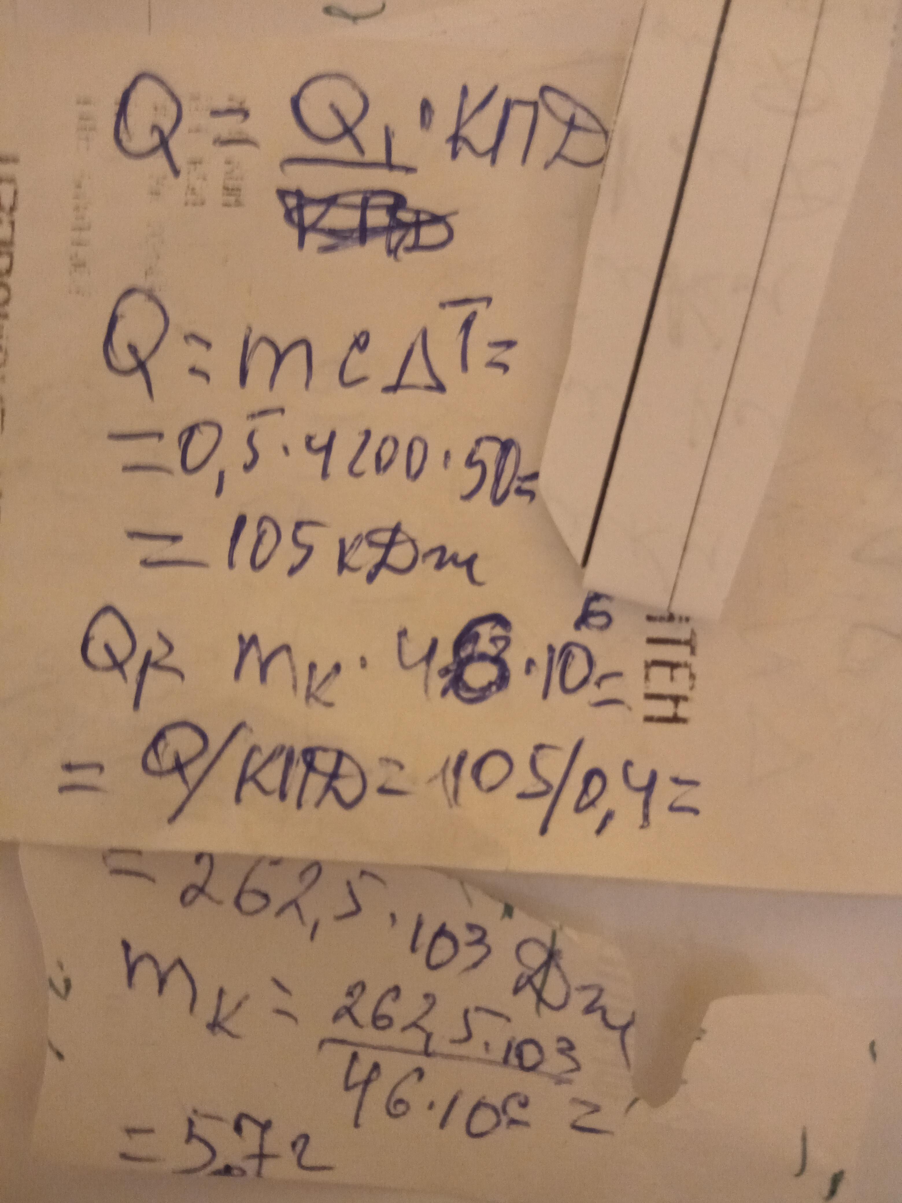 сколько керосина нужно сжечь чтобы наргрееть 0,5 литра воды на 50°С (Cb=4200Дж/кг*с). Считать что 40% теплоты керосина (pb=1000кг/м³) идёт на нагревание воды. qk-?