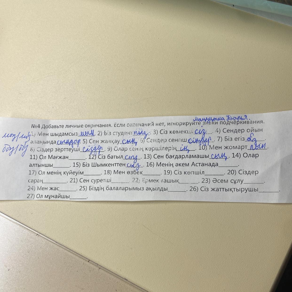 ал бос болсайды: 18-пін 19-сіз 20-сыздар 21-сің 23-сыз 24-пын 26-сыз