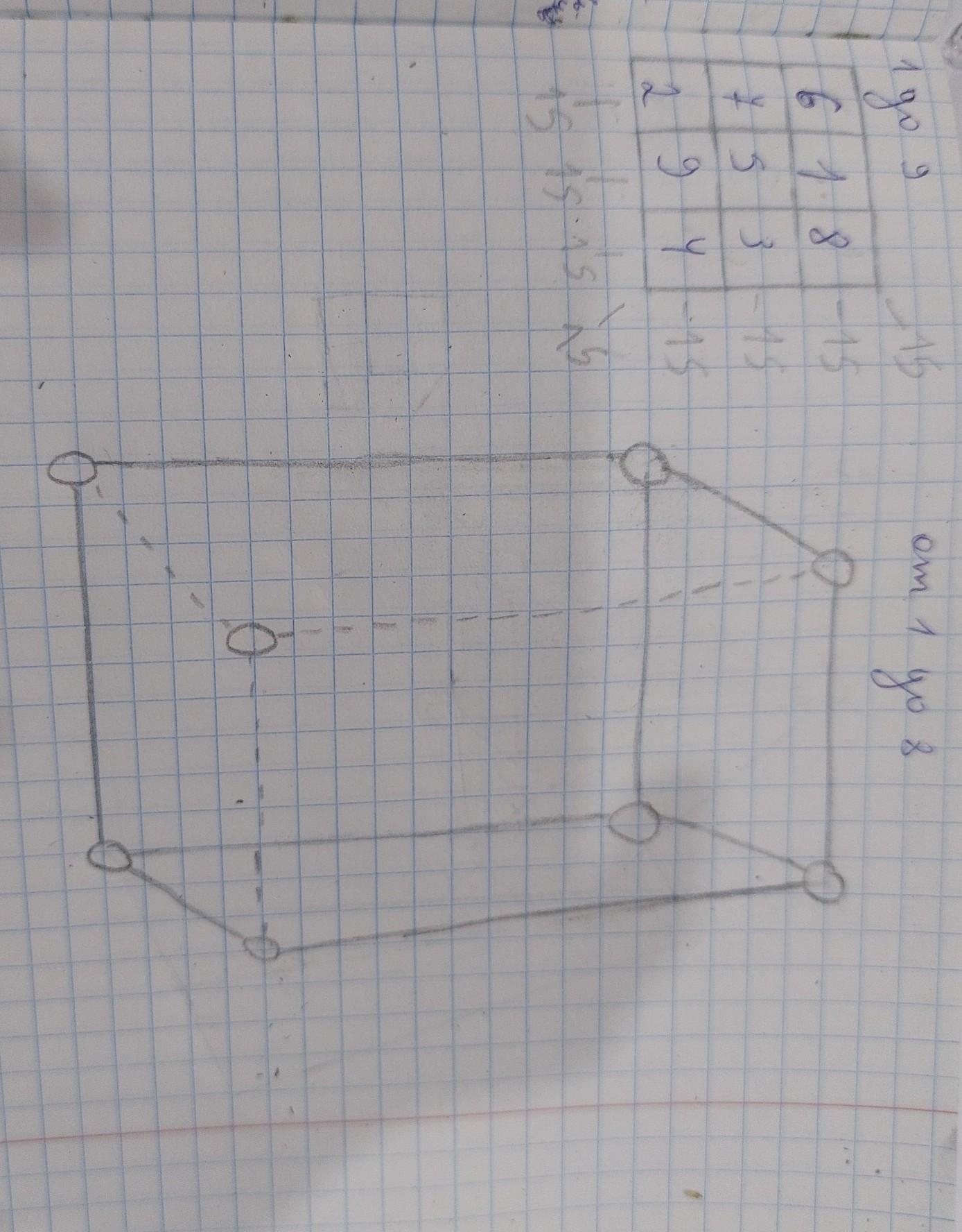 Надо место кружочков поставить цыфры от 1 до 8 цыфры не далжны плвторятся.И везде нужно чтобы сумма равнялась какомуто одному числу как на первом рисунке где всё равняяется 15
