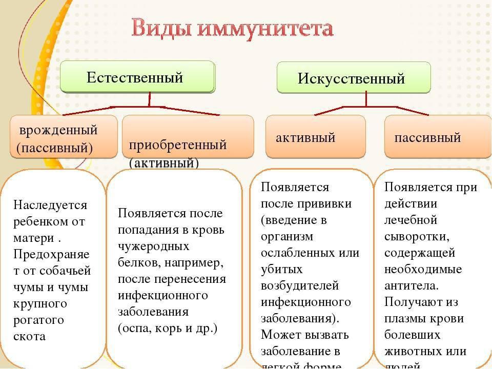 Врожденный иммунитет сохраняется всю жизнь, но он может быть преодолен, если дозы заражающего агента увеличатся или ослабеют защитные функции организма. В некоторых случаях иммунитет возникает после перенесенных заболеваний. Это приобретенный иммунитет. Переболев один раз, люди приобретают невосприимчивость к возбудителю. Такой иммунитет может сохраняться десятки лет. Например, после кори остается пожизненный иммунитет.