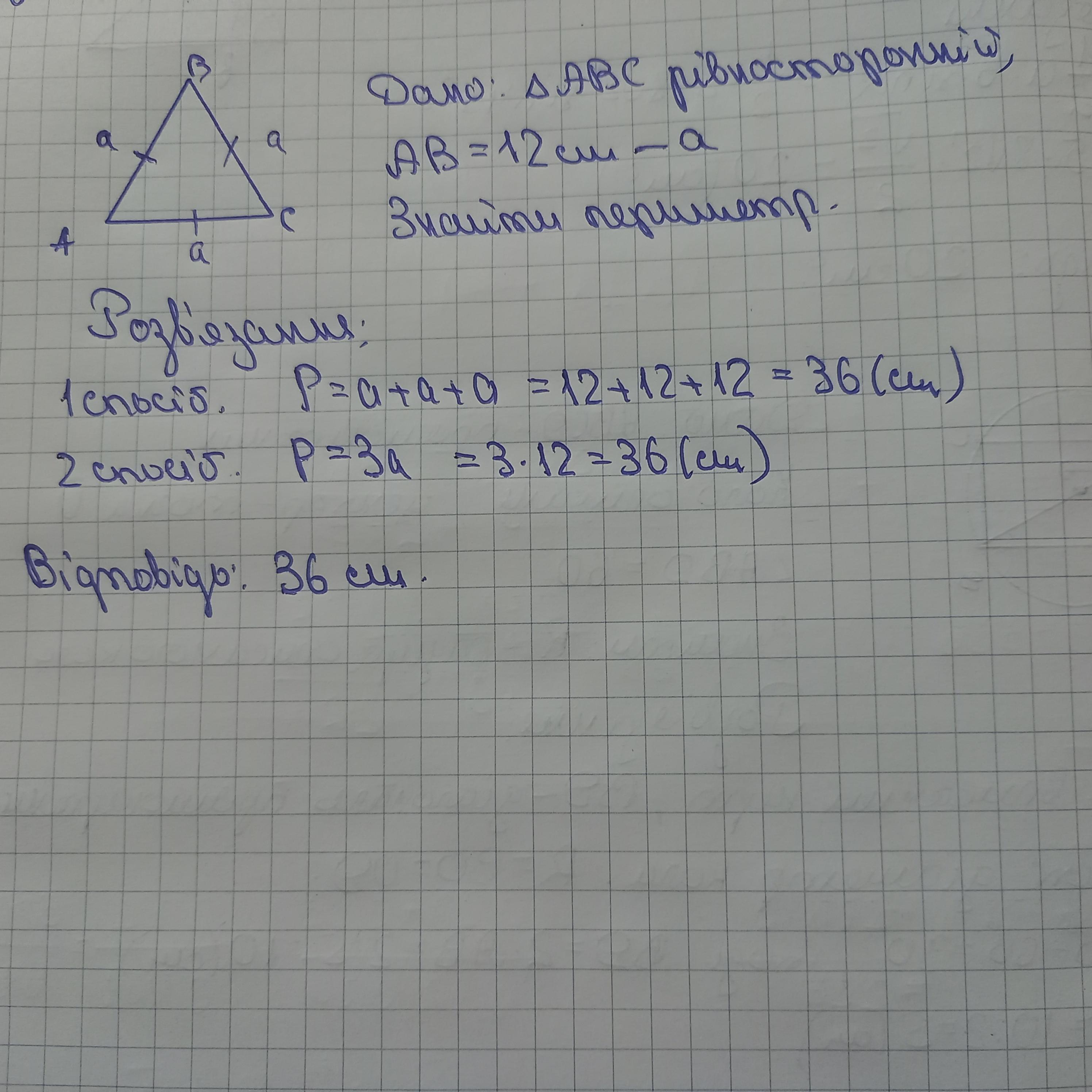 Обчисли периметр рівностороннього трикутника зі сторонною 12 см