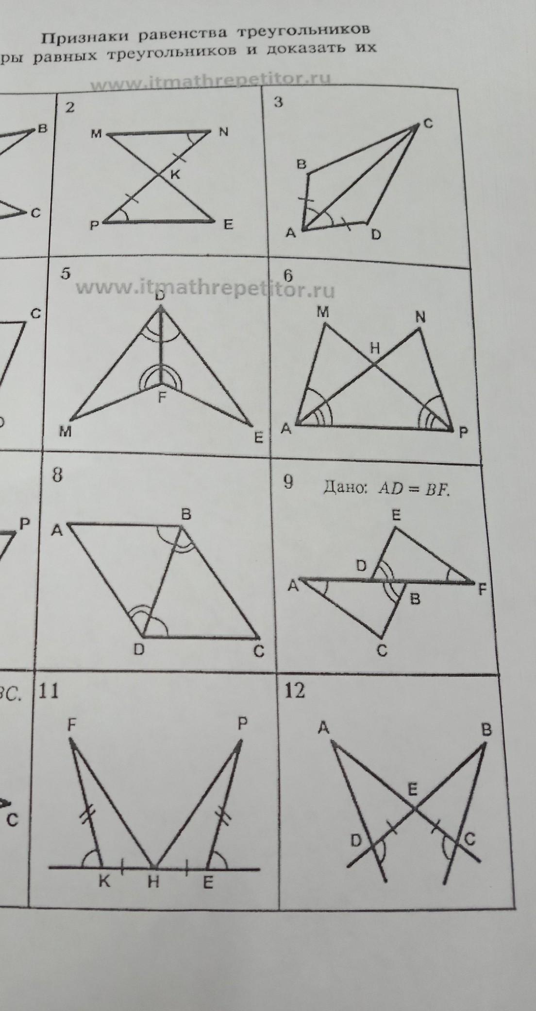 Найти пары равных треугольников и доказать их равенство.
