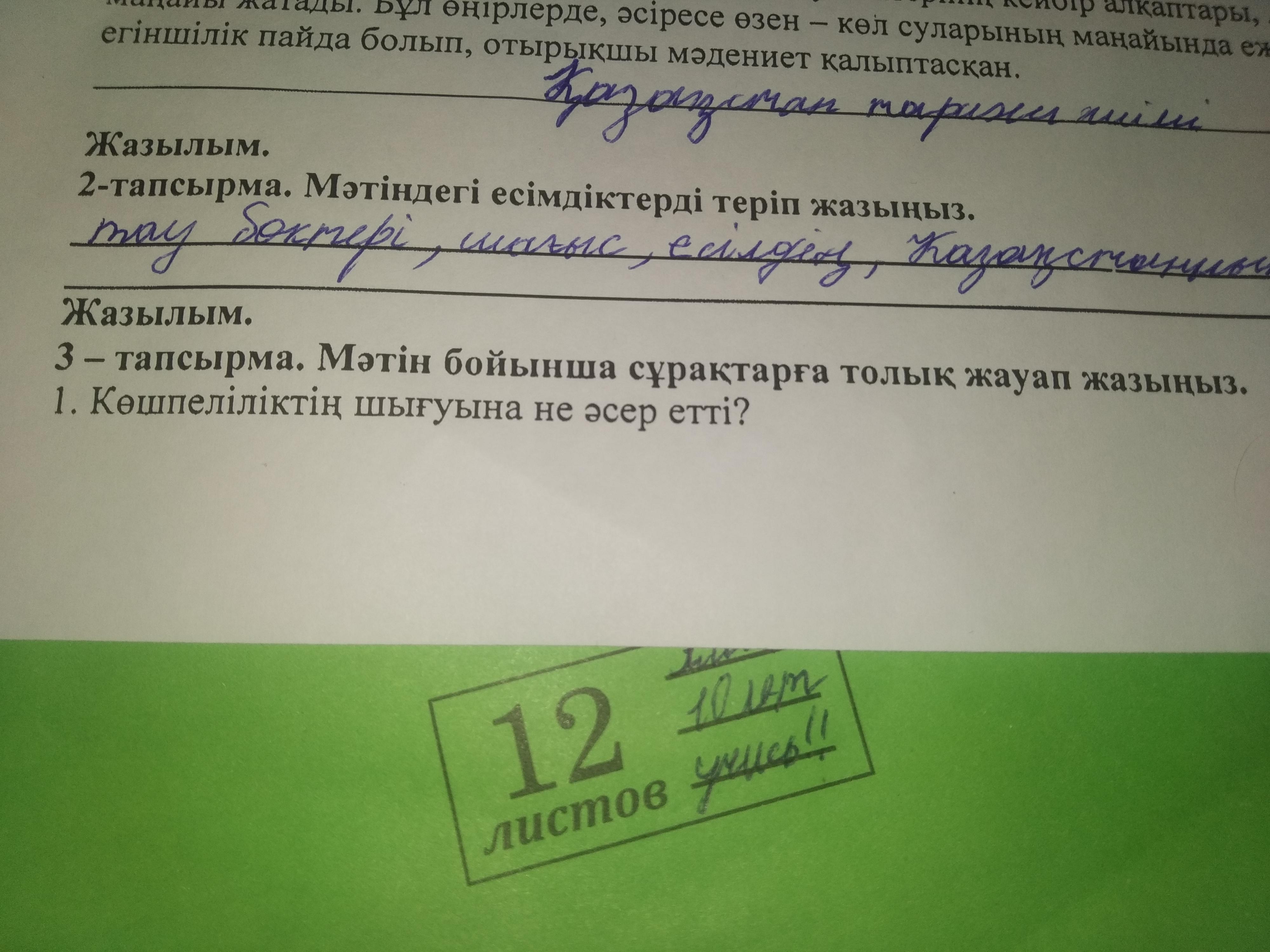 3 - тапсырма. Мәтін бойынша сұрақтарға толық жауап жазыңыз. 1. Көшпеліліктің шығуына не әсер етті? Помогите прошу
