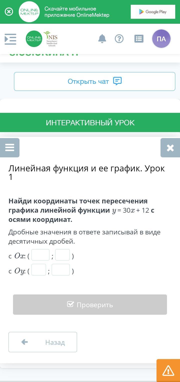 Помогите пожалуйста. Найдите координаты точек пересечения графика линейной функции y=30x+12c