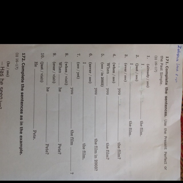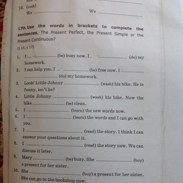 Я знаю!! Там где то нужен паст симпл, где то презент континиус, а где то презент пефект!!!!