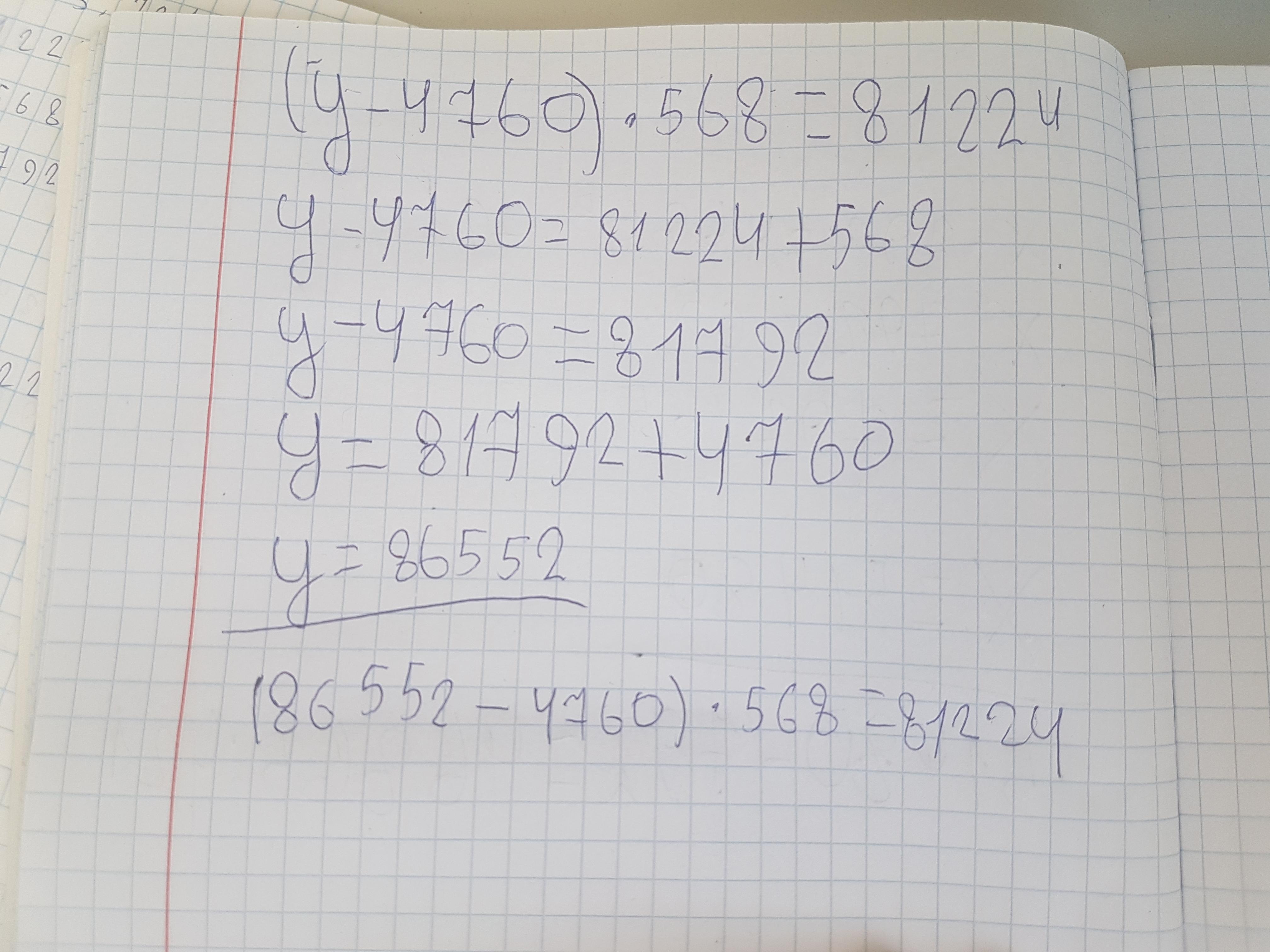 9 ДОМАШНЕЕ ЗАДАНИЕ Реши уравнения. x: 792 = 46 865 : 721 (y-4760)-568 = 81 224 столбиком фото пж