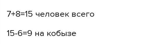 Сначала надо найти сколько человек в общем ,а потом уже сколько человек играла на кобызе . Надеюсь помогла ️