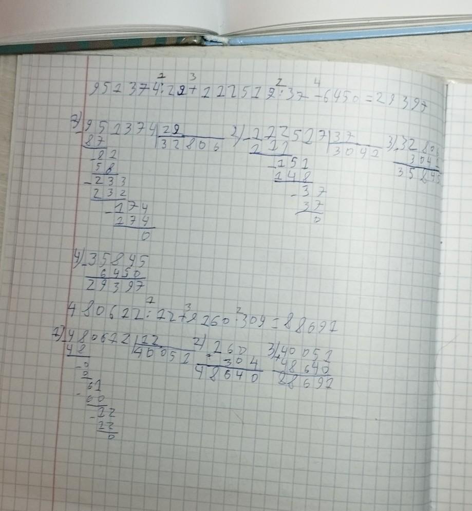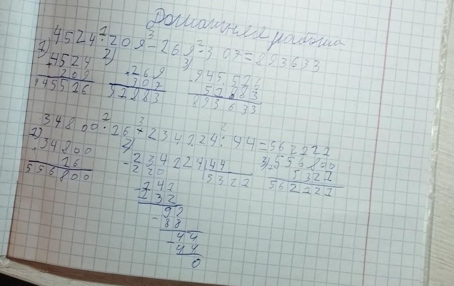 11 ДОМАШНЕЕ ЗАДАНИЕ Найди значения выражений. 4 524 209 - 169-307 34 800 16 +234 124:44 951 374:29 + 112 517:37-6450 480 612: 12 +9 160 304 фото