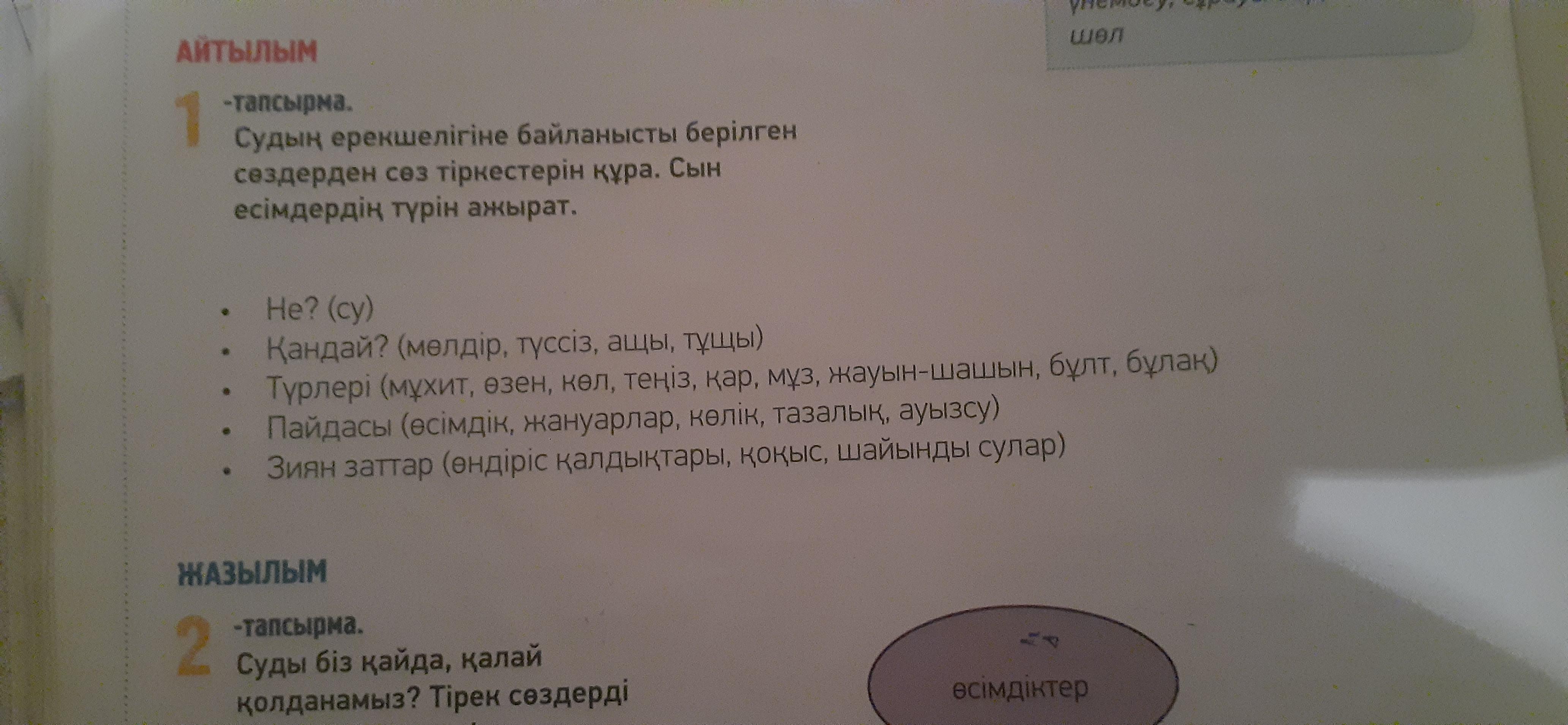 1 ТАПСЫРМА.Пожалуйста помогите.Там нужно сделать предложения (5-10) с помощью слов в скобках.На фотографий всё есть.Даю 30 баллов.
