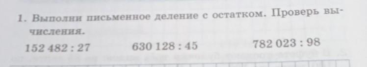 1. Выполни письменное деление с остатком. Проверь вычисления.