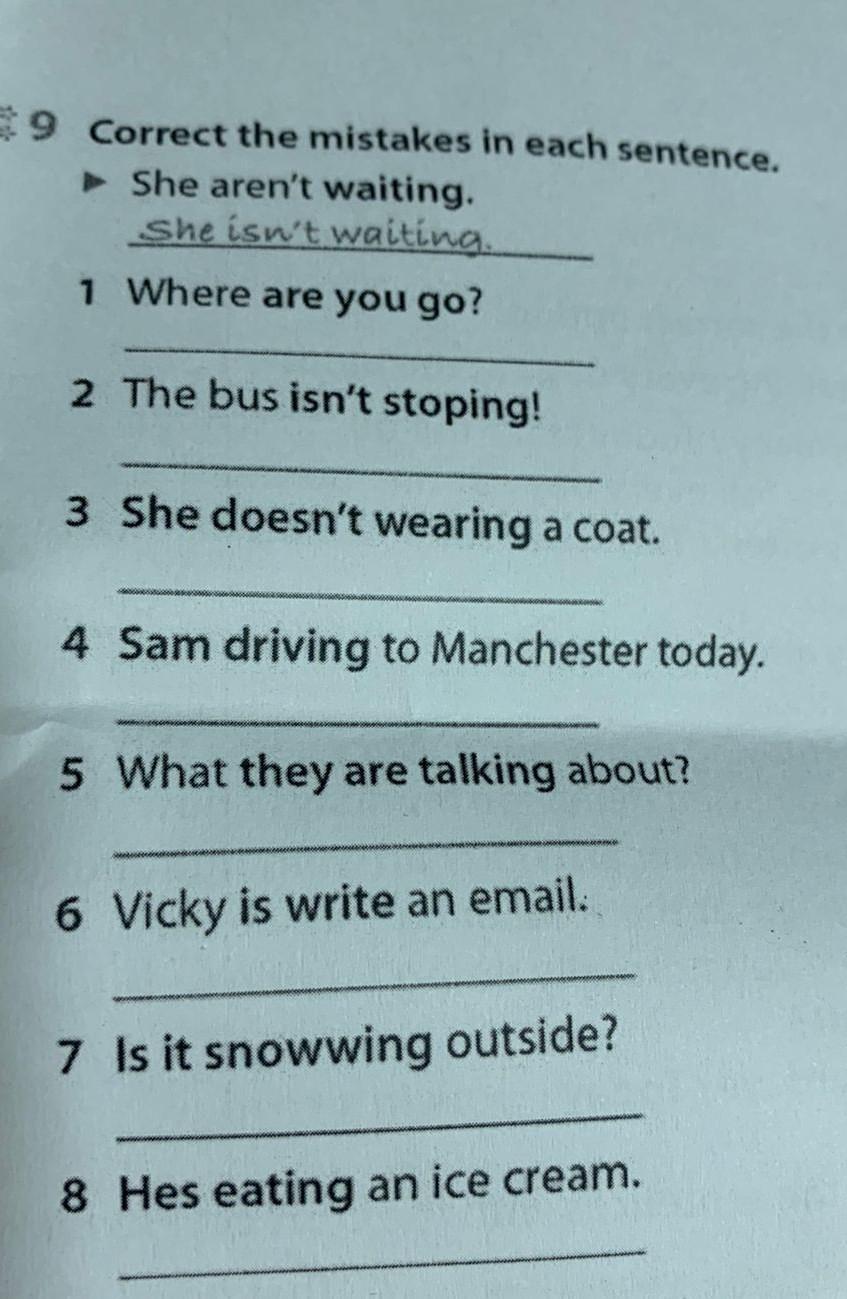 9 Correct the mistakes in each sentence. ► She aren't waiting. She isn't waiting.