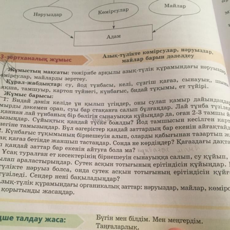 4)Азық-түлік құрамындағы органикалық заттар:нәруыздар,майлар,көмірсулар туралы қорытынды жасаңдар