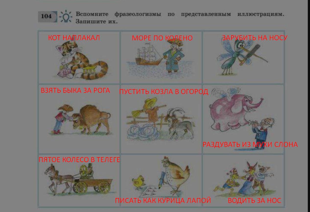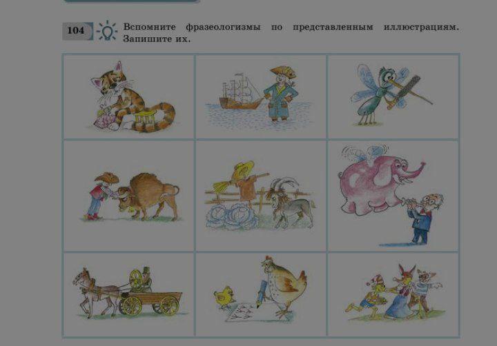 Вспомните фразеологизмы по представленным иллюстрациям. Запишите их.