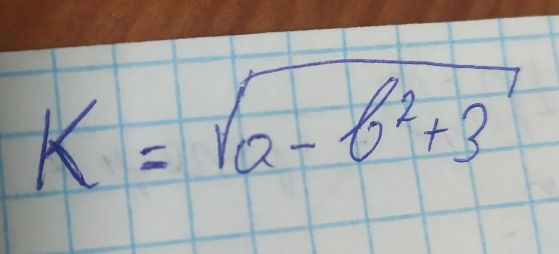 if (a-sqr(b)+3)<0 then write('Неверный ввод') else write('K = ',sqrt(a-sqr(b)+3))