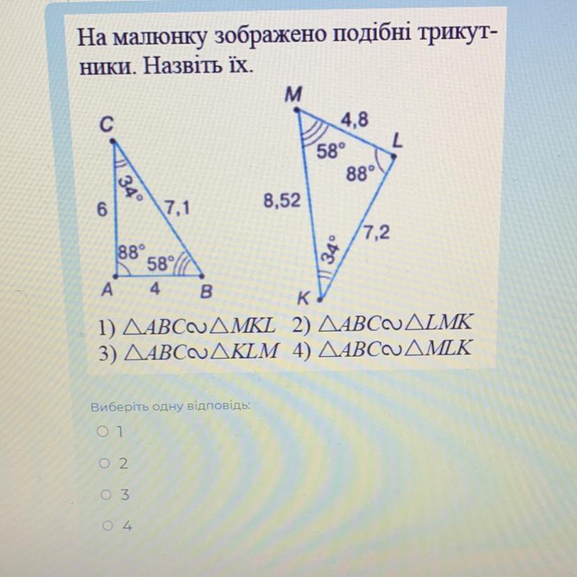2. тому що кут А відп. куту Л, кут Б відп. куту М, та кут С відповідний куту К