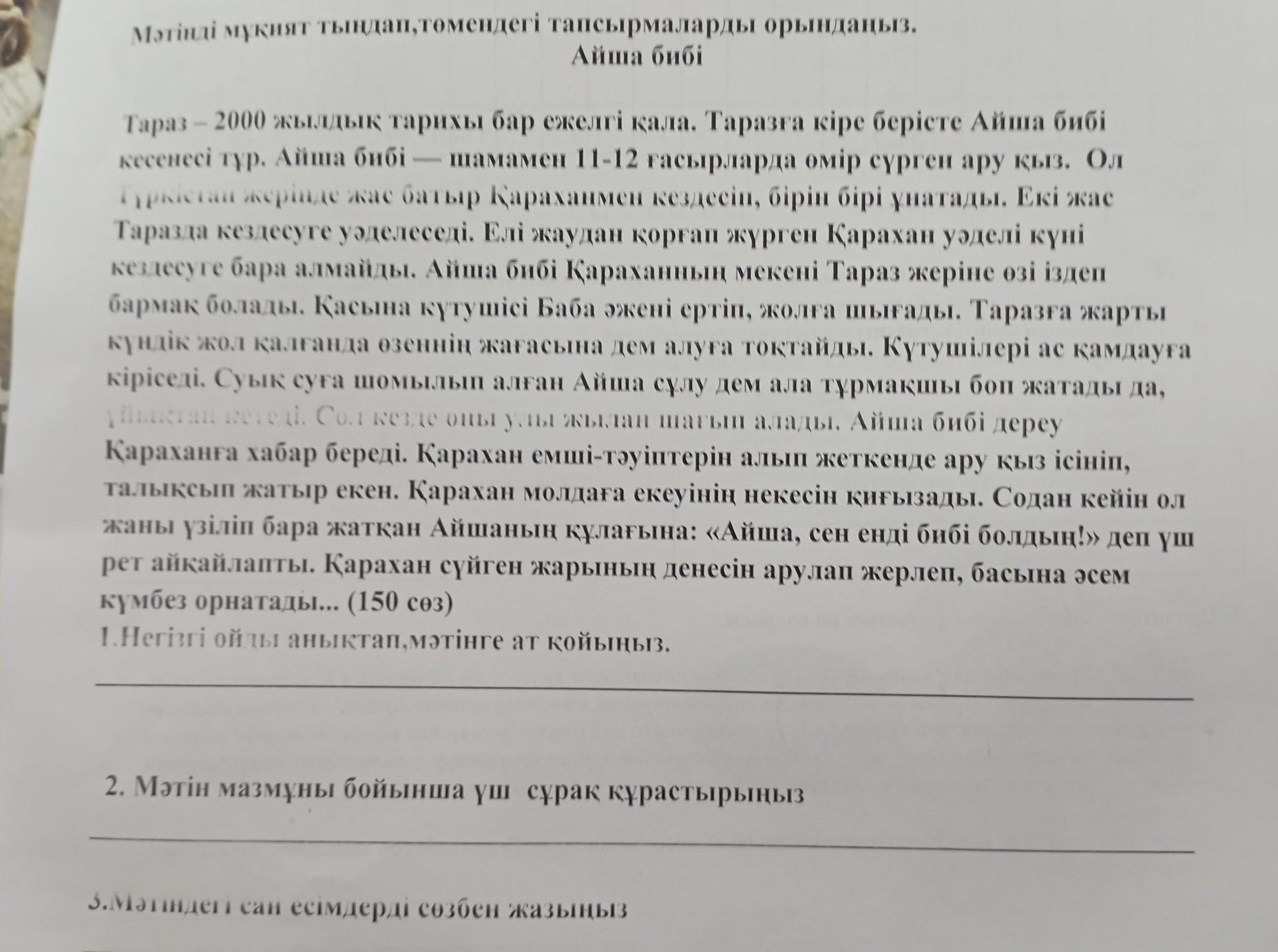 Задание3.Мәтіндегі сан есімдерді сөзбен жазыңыз