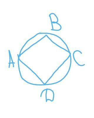 если четырехугольник вписан в окружность, то суммы величин его противоположных углов равна 180°