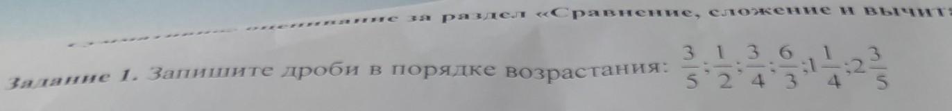 ервое ачени 1На м. F ное оц Задание 1. Запишите дроби в порядке возрастания: Критерий оценивания Располагает обыкновенные дроби в порядке возрастания 3 1 3 6 1 5 2 4 №o задания 1 3 3 -;2. 4 5 Дескриптор Обучающийся Записывает дроби в порядке возрастанияпжпжпжпжжпж