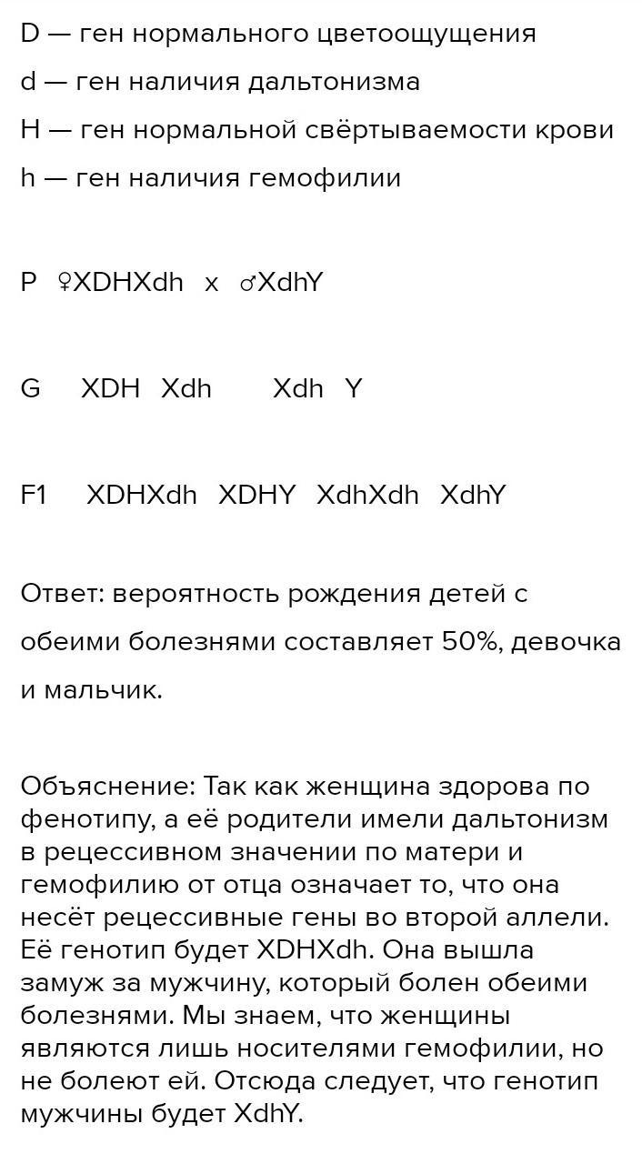 Вероятность рождение детей с обоими болезнями составляет 50%