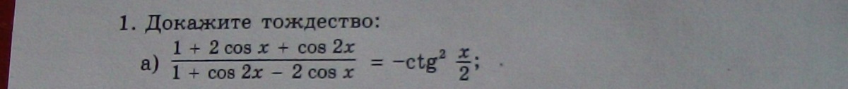 (1 + 2cos x + cos 2x) / (1 - 2cos x + cos 2x) =