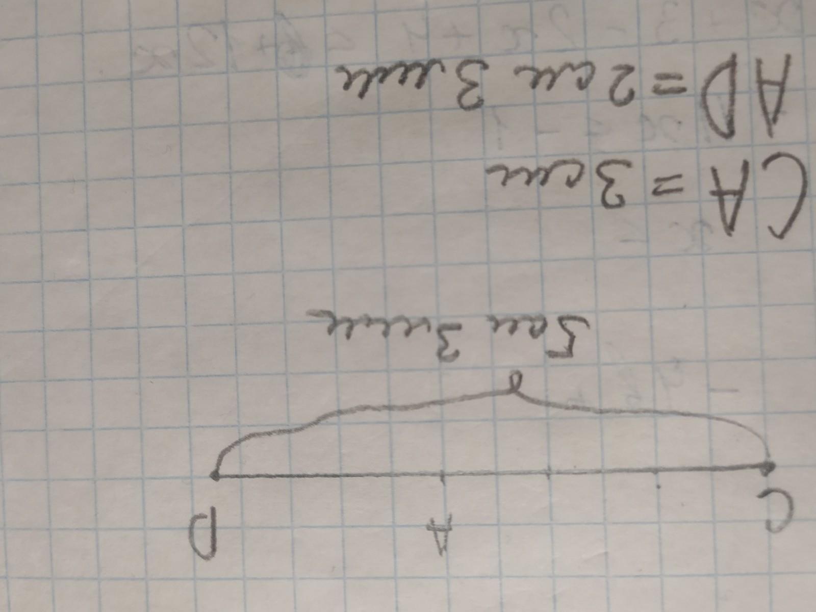 Накресліть відрізок CD, довжина якого 5 см 3мм, позначте точку А. З, які відрізки при цьому утворились, і виміряйте їх довжини. Срочно будь ласка!