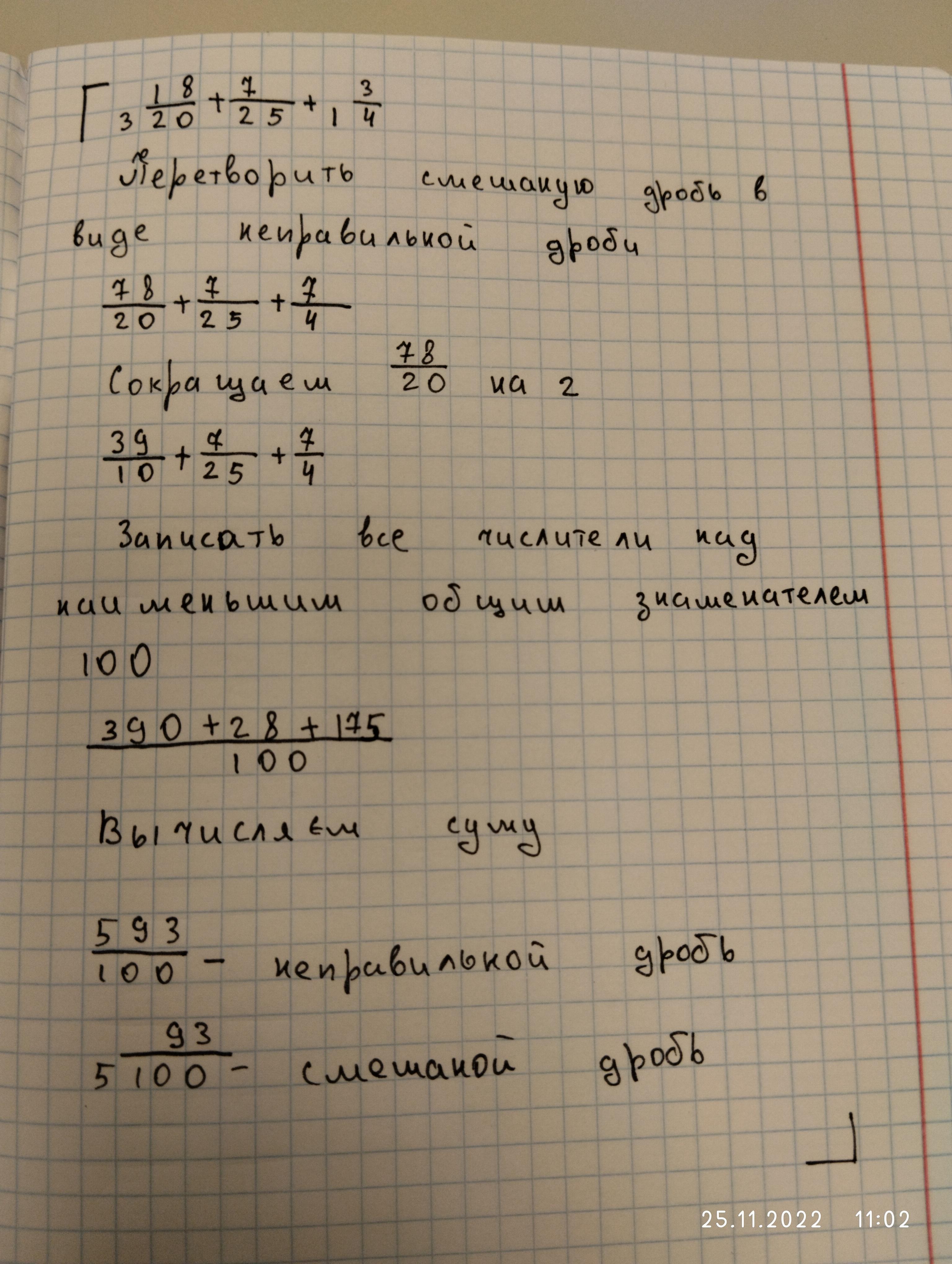 3 целых 18/20 + 7/25+ 1 целая 3/4 =??? Решите пожалуйста! дам 30 баллов♡ Только решайте все четко и понятно, то есть как вы нашли ответ примера.