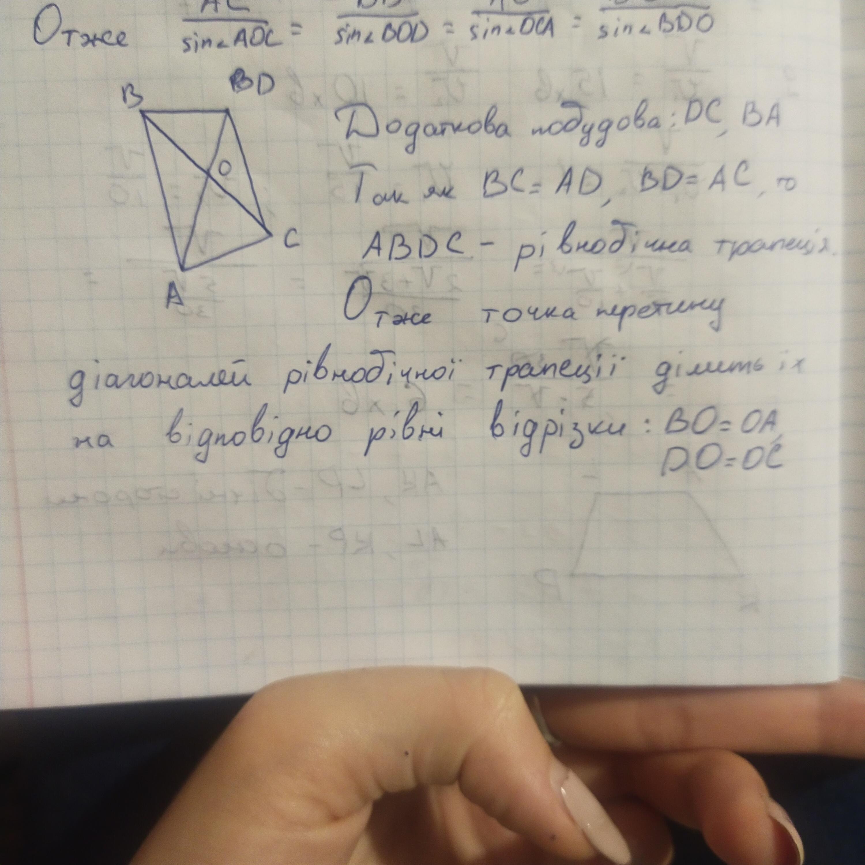 4. Рiвнi вiдрiзки AD і BC перетинаються в точці О, причому АС = BD. Доведіть, що АО=ВО