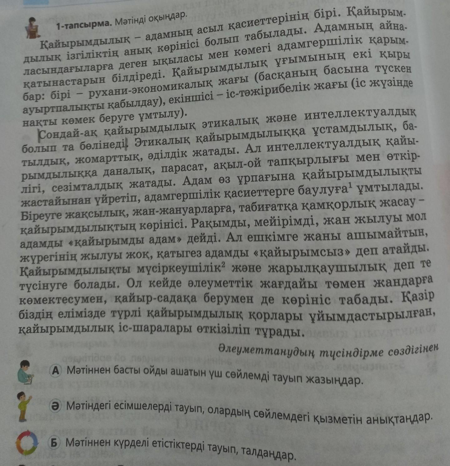 2-сөйлем . Қайырымдылық этикалық және инттелектуалды болып бөлінеді .