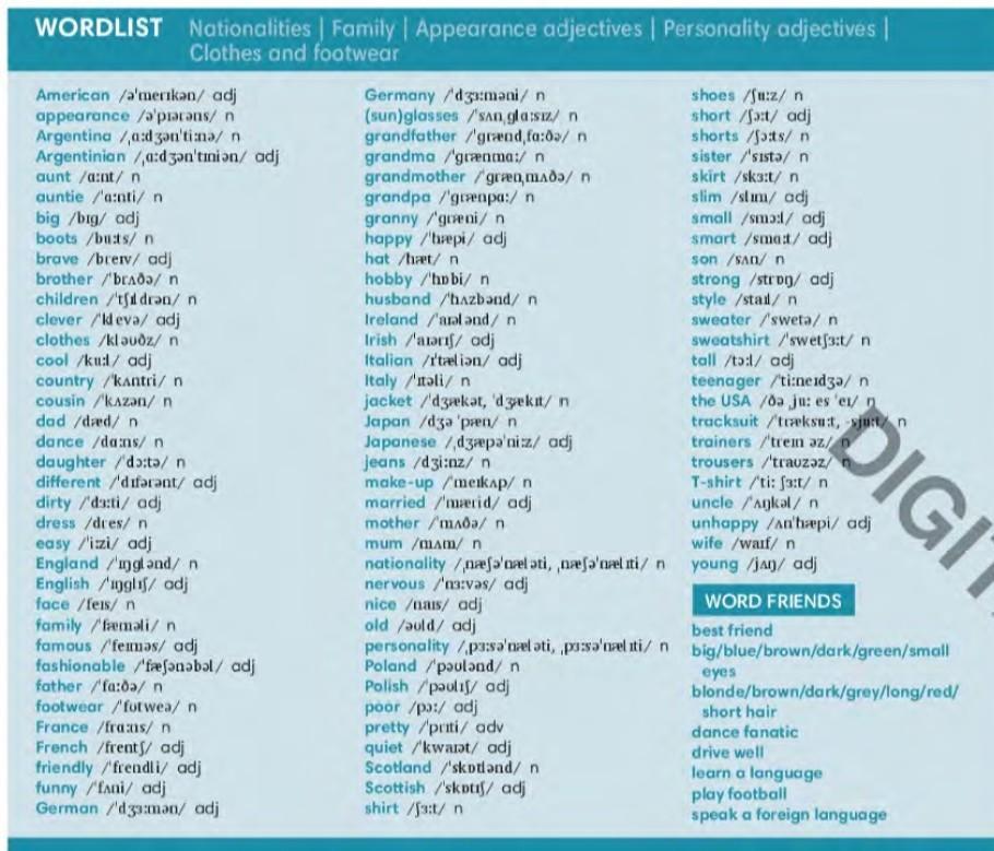 She's short and ³s_______.She's a got a ⁴p______ face a long, brown 5h______.