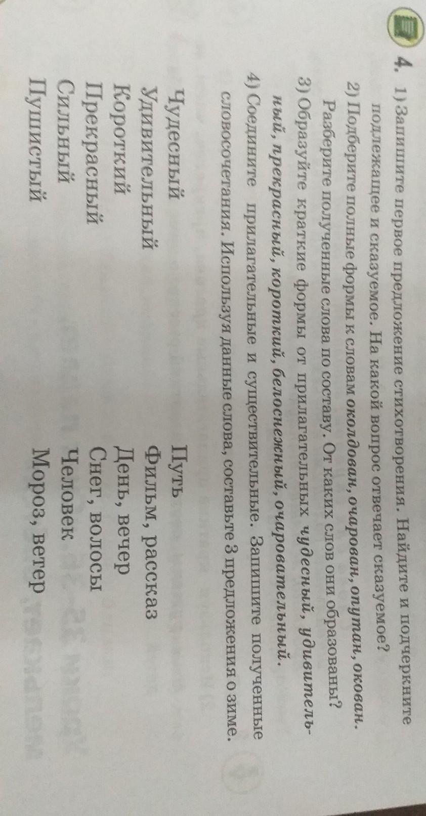 3) Образуйте краткие формы от прилагательных чудесный, удивитель- ный, прекрасный, короткий, белоснежный, очаровательный.