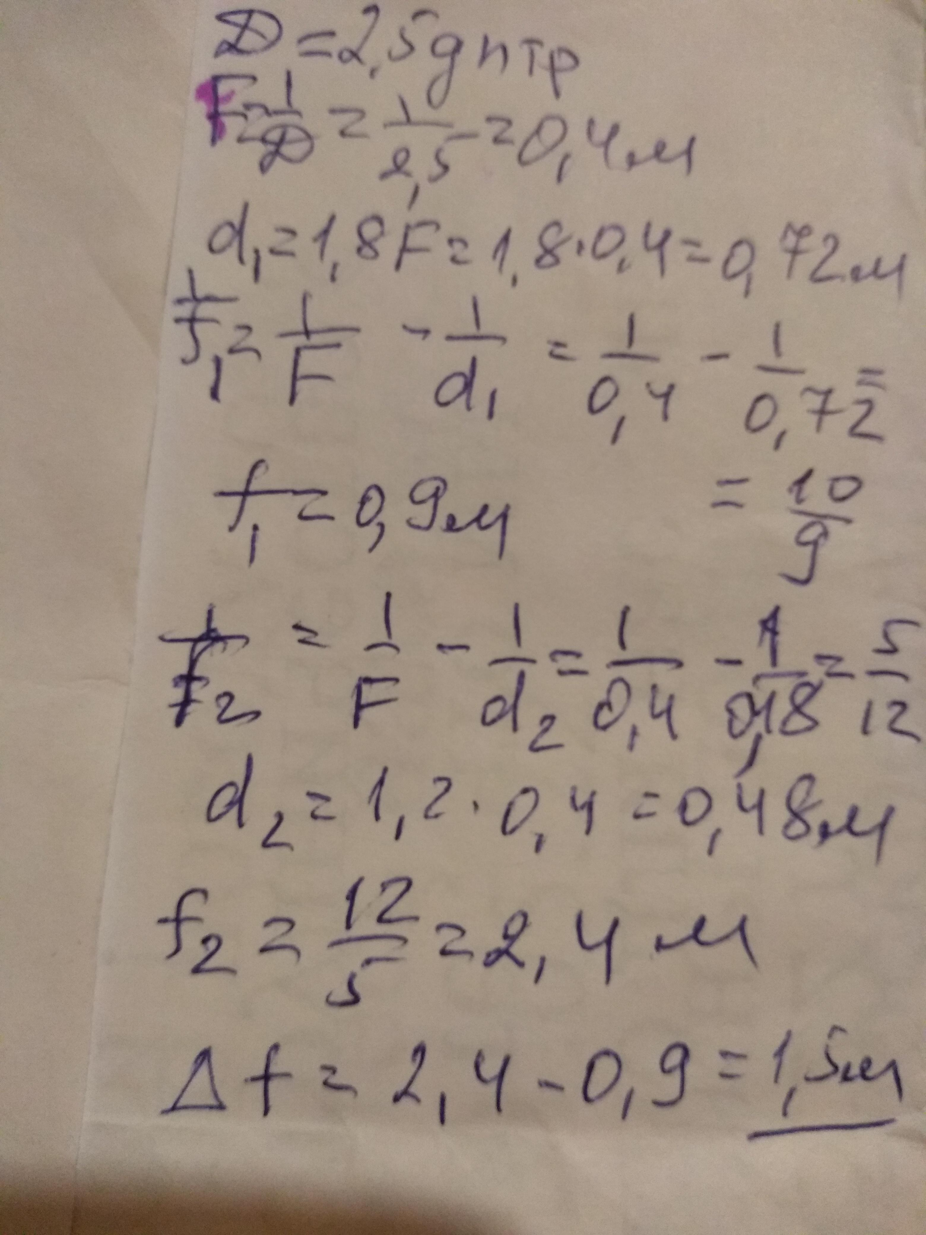 відстань 1,2 F. На скільки, перемістилося зображення предмета, якщо