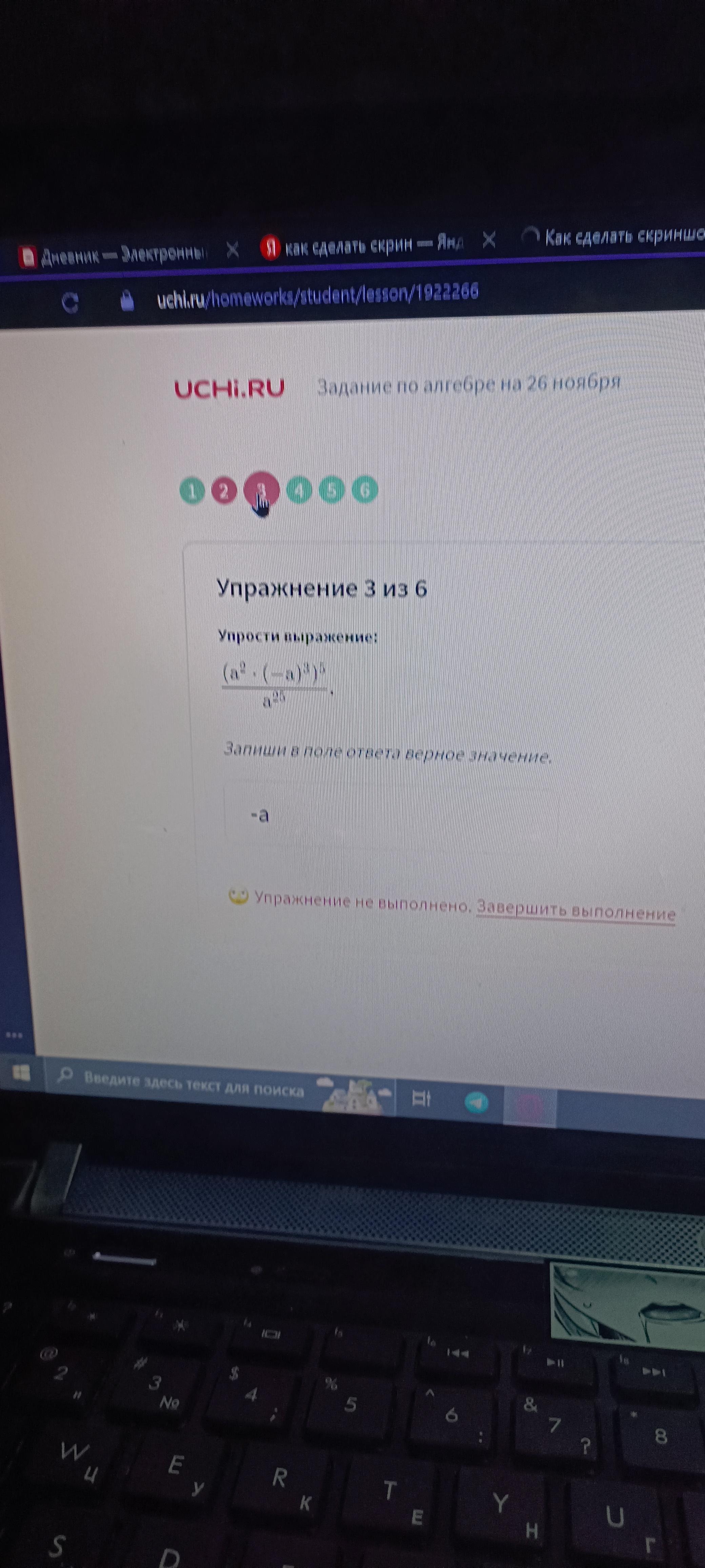 3) (a^2 * (-a)^3)^5 / a^25 = (-a^6)^5 / a^25 = -a^30 / a^25 = -a^5