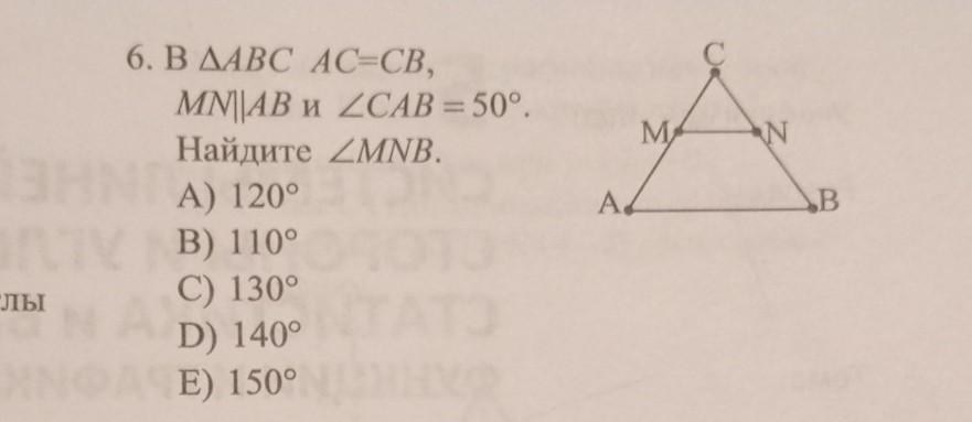 АВ,то угол MNB+угол СВА =180 градусов.(как односторонние углы при MNIIAB и СВ секущей) Откуда угол MNB=130 градусов.