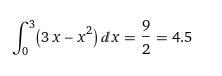 integral_0^3 (3 x - x^2) dx = 9\/2 = 4.5