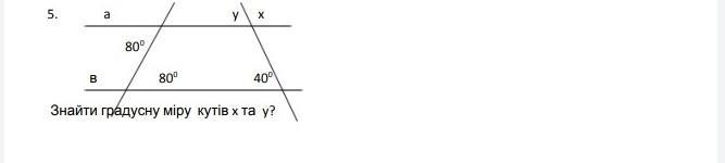 Кут x = 180°-y = 180°-40° = 140°