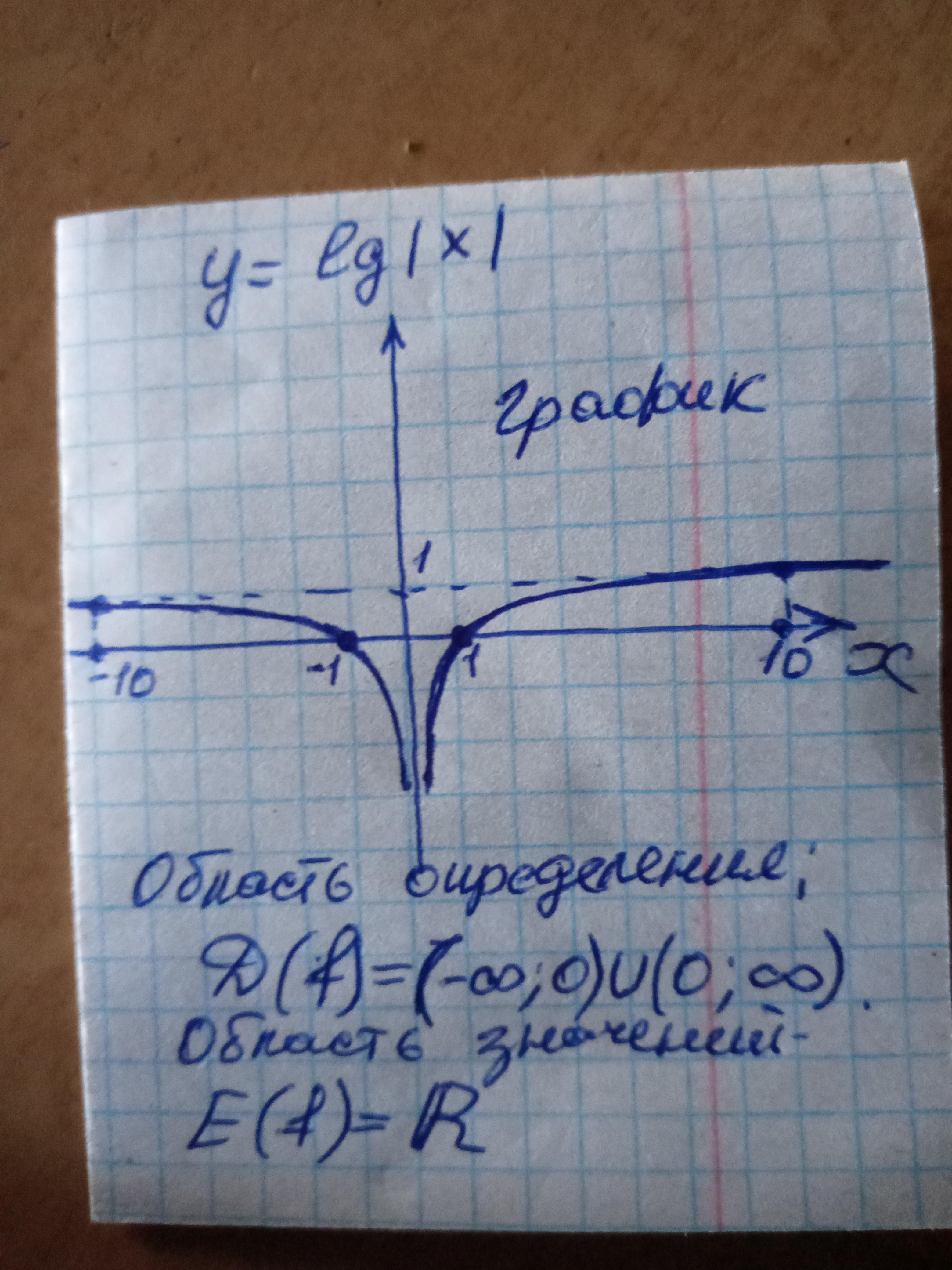 Побудуйте графік функції : у = lg|x| та вкажіть її властивості