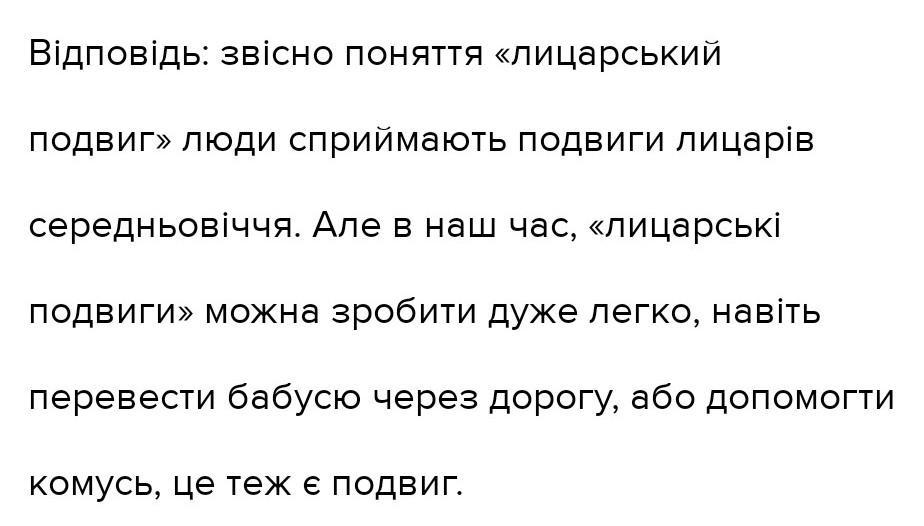 В наш час лицарів, звичайно ж, немає. Але подвиги все одно відбуваються з дня у день. Так чи обов’язково одягатися в обладунки, носити в піхвах сталевий меч і мати вірного бойового скакуна для того, щоб зробити подвиг? Думаю, що ні. Для деяких людей подвиг стає професією, наприклад: пожежні або поліцейські.