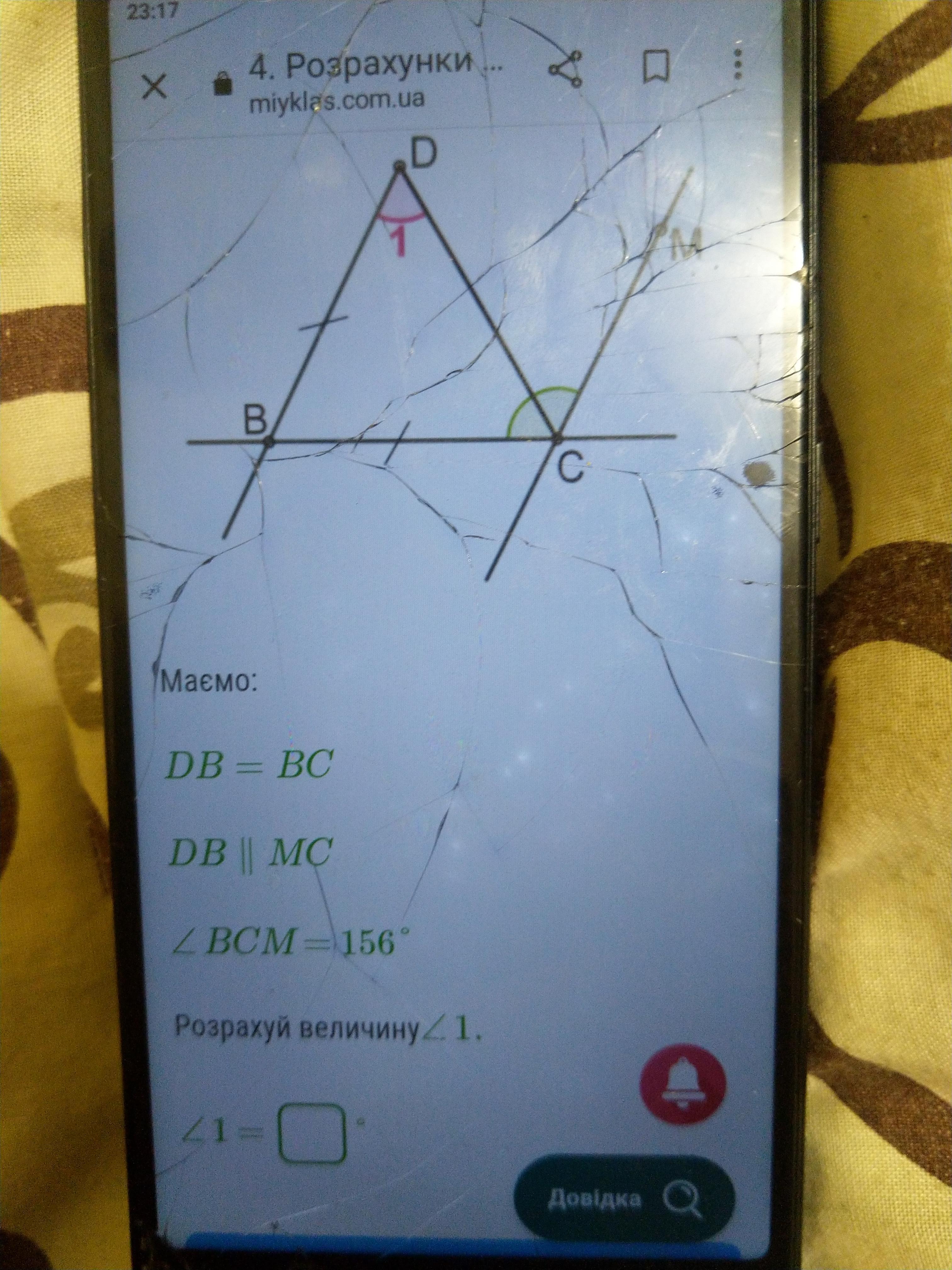 Отже, кут ДСВ=кут ДСМ=156:2=78°.