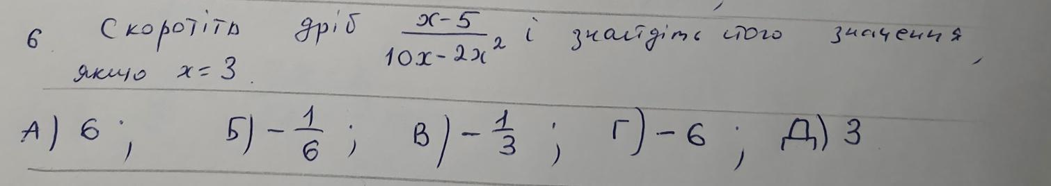 Замінюємо х на 3, отримуємо - 1 / 6, тобто відповідь Б