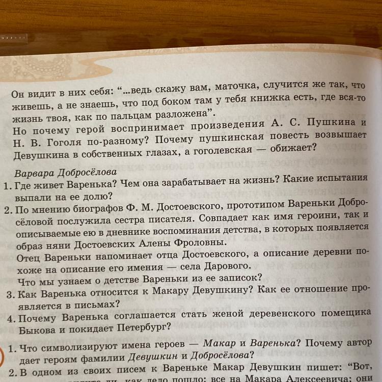 3. Как Варенька относится к Макару Девушкину? Как ее отношение про-