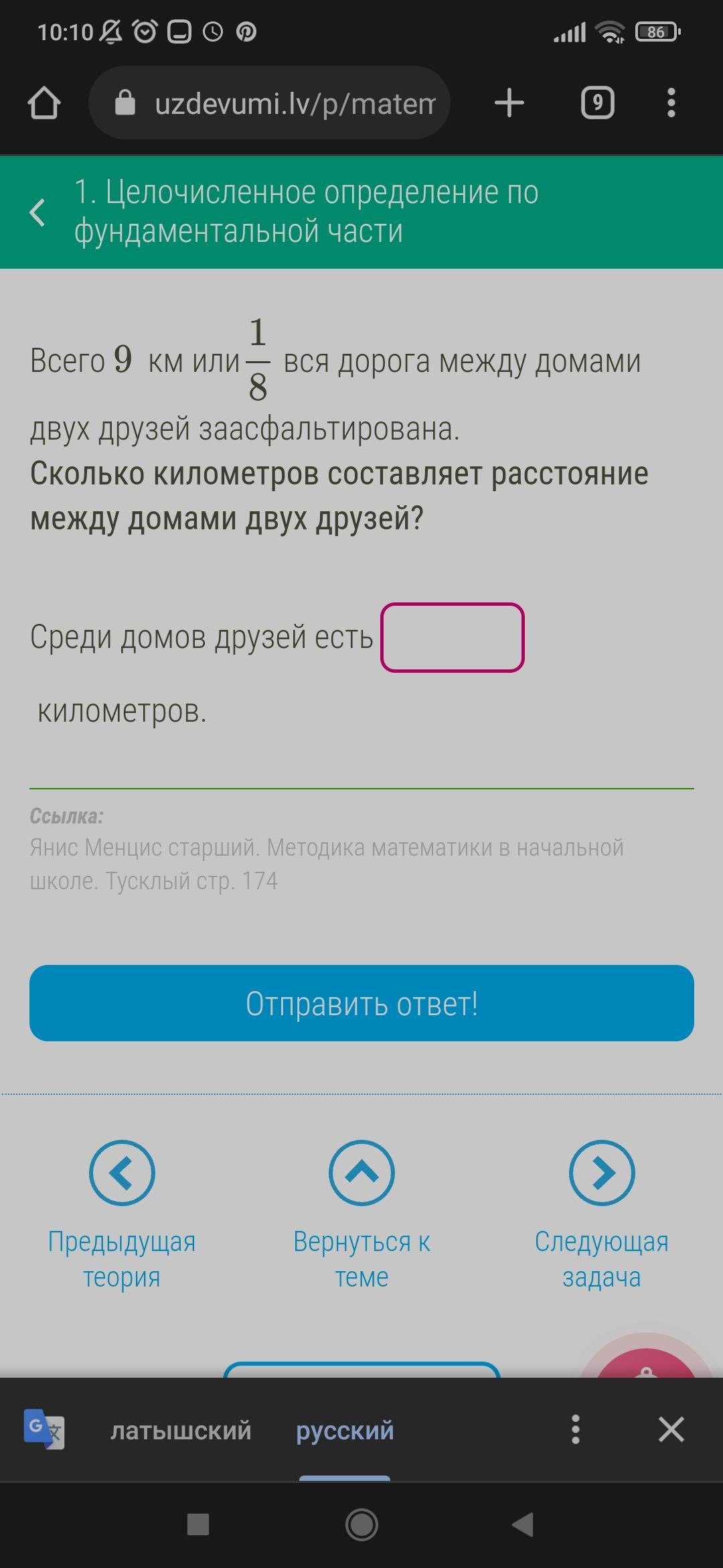 х=9•1:1/8=9•8/1=72 км расстояние между домами.