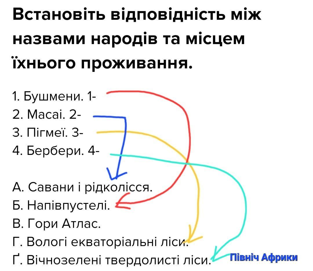 Встановіть вiдповiднiсть мiж назвами народів та місцем їхнього проживання.