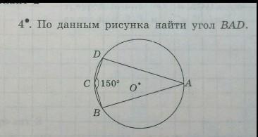 Дуга ВАD = 150° * 2 = 300° - за властивістю вписаного кута.